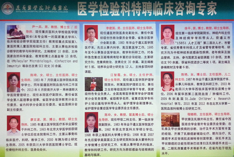 williamhill中文官网附属医院医学检验科地址:贵州省遵义市大连路149号 电话:(0851)28608182 邮编:563003