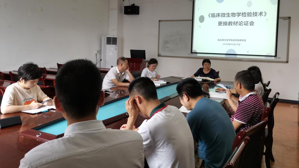 会上,陈泽慧主任提出规范教材选用的原则和要求。在2020-2021学年第一学期教材选订过程中,教研室收集任课教师更换教材的意见和建议,并组织召开本次论证会。全体老师分别陈述教材选用理由。逐一对拟换中国医药科技出版社第四版《临床微生物学检验》作为本学期教材发表意见和建议,教学秘书当场汇总意见。由于中国医药科技出版社第四版《临床微生物学检验》教材属于书网融合,教学配套资源(PPT、微课视频等)、题库系统、数字化教学服务(在线教学、在线作业、在线考试)、使教学内容更加多样化、立体化、生动化,便教易学。鉴于诸多优点,全体老师们一致同意将中国医药科技出版社第四版《临床微生物学检验》教材作为2020-2021学年第一学期医学检验技术专业的教材。