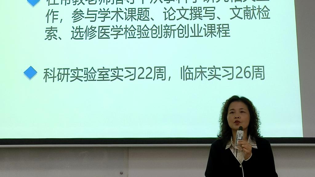 随后,蔡亮容老师就实习考核手册以及实习管理制度进行了宣讲,包括实习安排、实习考核、培训学习、请假制度等。希望同学们珍惜实习机会,认真对待实习工作,严格遵守实习纪律,服从实习安排,鼓励同学们积极参与临床实践操作,争取在实习期间取得优异成绩;同时,还强调了请假制度,要求同学们因病或特殊情况需要请假时,要按照规定程序办理请假手续,确保实习工作不受影响。
