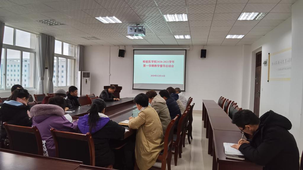会议首先由教学督导组组长蔡亮容汇报本学期教学督导工作情况:由于受新冠疫情影响,一年一度青年教师讲课竞赛被搁置,本学期教学督导对象主要集中在初级和中级职称的青年教师以及拟晋职称教师;本学期接受公司专家组督导6人次,院级层面督导听课16人次,院领导督导听课9人次;反馈了本学期教学督导工作中了解的情况,理论和实验课中存在的问题、原因分析和建议。同时通报了公司教学督导组由具有丰富临床教学经验和管理经验的高年资副高职称教师组成,提出了督导组教师要明确教学督导的意义,做好督导工作,要充分理解和把握评价标准,从教师本身的态度、学术内涵及表现能力方面进行综合评价。