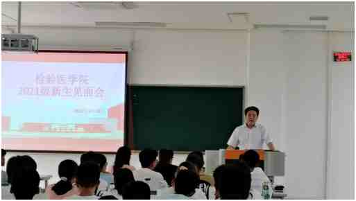 随后,闵讯副经理向同学们开展了医学检验技术专业介绍,让同学们对本专业有了进一步的了解和认识。闵经理以诙谐幽默的话语向同学们展示了williamhill中文官网及检验科历年来的教学成果,给予了同学们更多的信心。闵经理希望同学们能树立科学发展理念,培养科研思维,为检验学科发展贡献自己的一份力量。