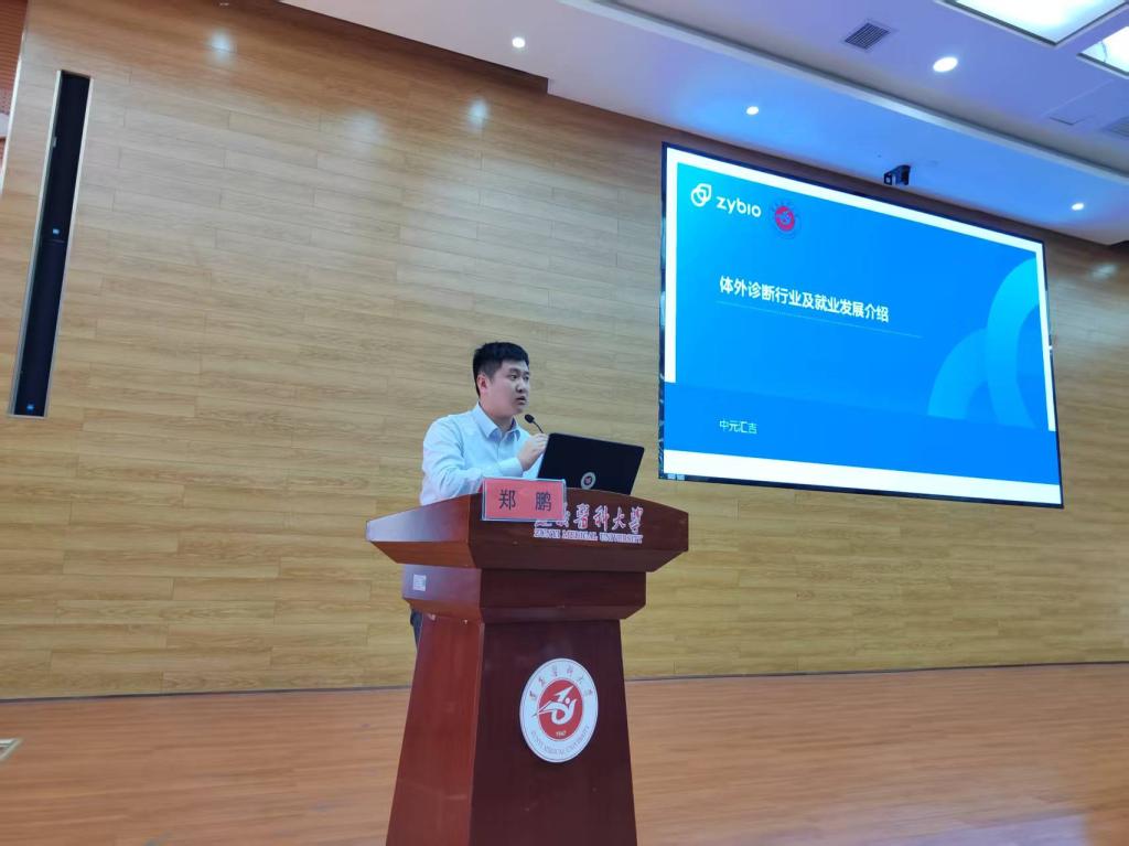 此次活动分2个阶段。第一阶段由华大基因时空病理专项主任科学家吴靓作专题报告。吴靓主任以基因组测序技术的发展为脉络,为大家深入浅出地介绍了该技术的发展历史和现状,让与会人员深入了解了华大基因集团在其中所做的贡献。第二阶段由重庆中元汇吉生物技术股份有限公司的专家作就业宣讲。郑鹏经理介绍了我国体外诊断行业的现状及发展趋势;龚明华经理则以个人职业发展经历,引导同学们正确认识IVD企业,并向同学们介绍了中元汇吉公司的发展历程、现状、愿景和人才需求,还就同学们关心的待遇、福利、晋升等问题一一进行了解答。