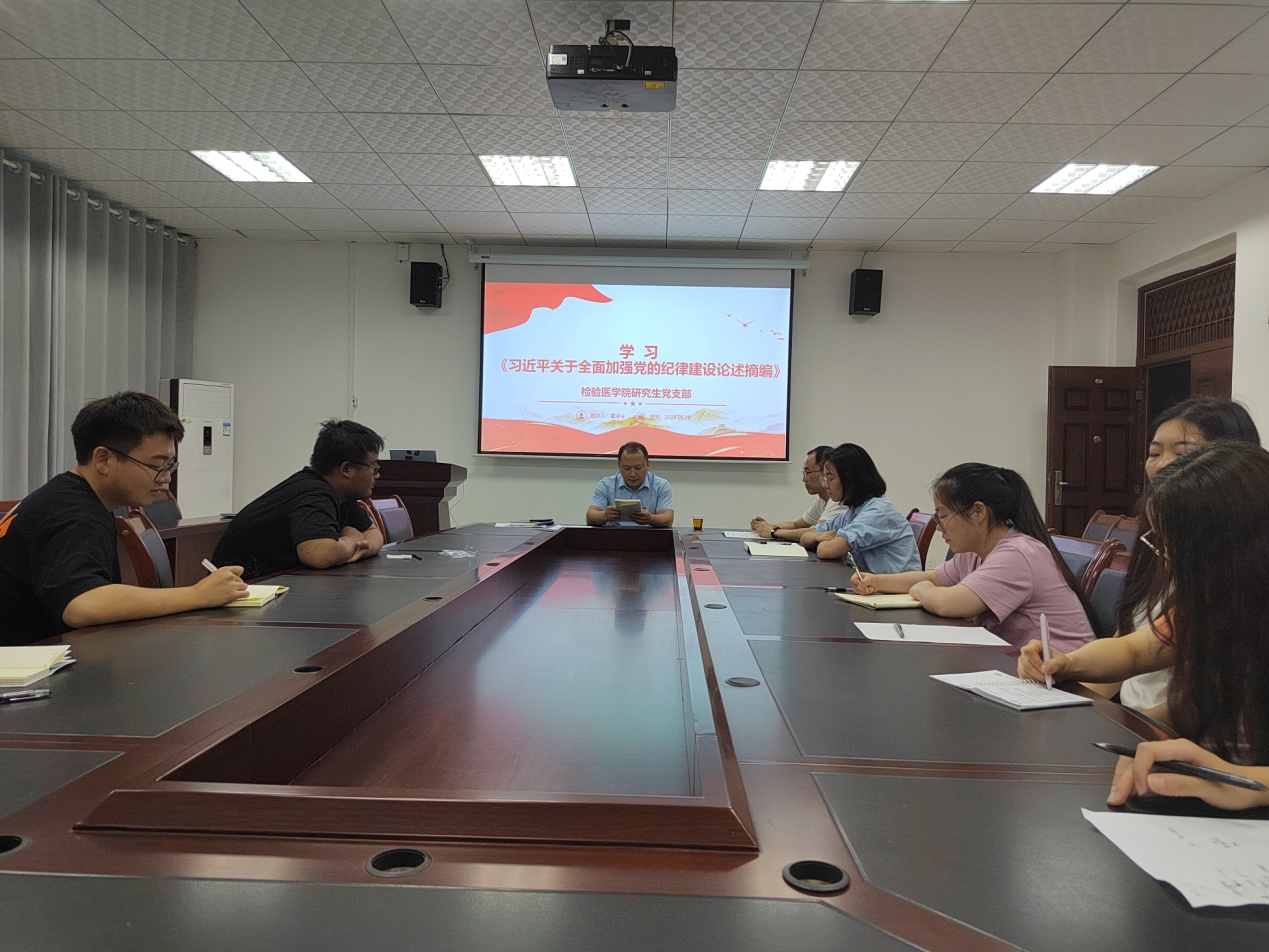 6月18日,按照公司党委统一部署,williamhill中文官网研究生党支部在williamhill中文官网五楼会议室开展学习“习近平关于全面加强党的纪律建设论述摘编” 、“育传统美德,扬爱国情怀”主题党日活动。会议传达学习近期党中央关于“党纪学习教育”重要会议和文件精神,安排部署并落实学习要求。活动由董泽令书记主持,研究生党支部全体党员参会。