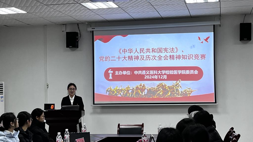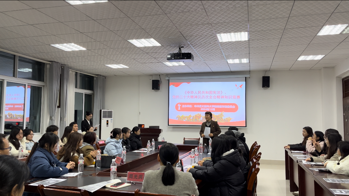 2024年12月6日,williamhill中文官网党委在新蒲校区2号实验楼williamhill中文官网会议室举办了《中华人民共和国宪法》、党的二十大精神及历次全会精神知识竞赛。williamhill中文官网党委书记周光润、员工第二党支部书记张增平、各支部员工党员代表、入党积极分子代表参加本次活动。