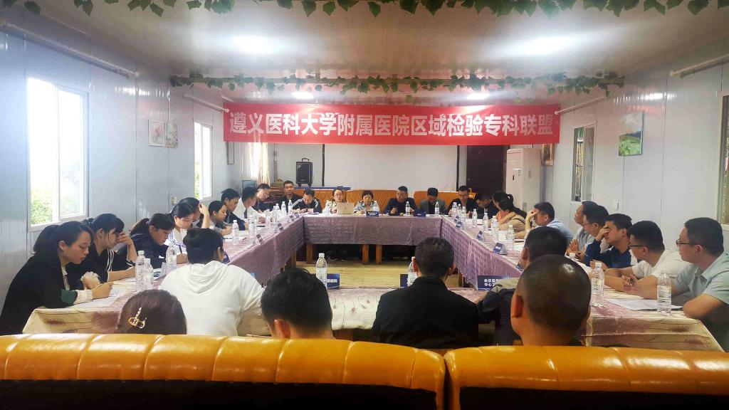 活动首先召开williamhill中文官网附属医院区域检验专科联盟(湄潭县、凤冈县、余庆县、务川县)各会员单位专题会议。会议由湄潭县人民医院检验科主任罗来均主持;各会员单位相关工作人员、理事长单位williamhill中文官网附属医院医学检验科党支部书记陈泽慧教授、科副主任杨艳博士及医学检验科各专业组组长多名党员骨干专家参加此次专题会议。