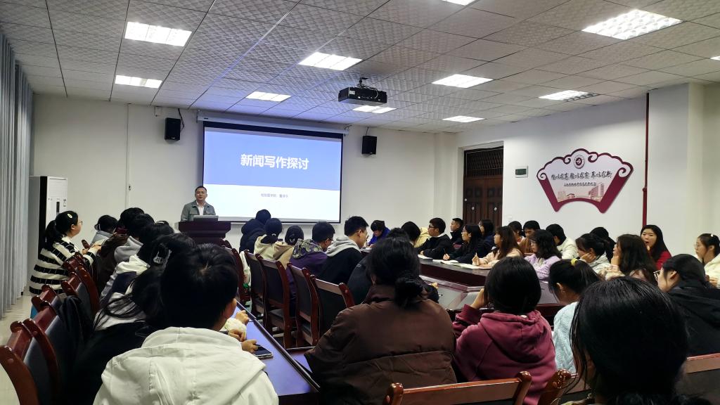 董老师以“新闻写作探讨”为题对与会人员进行了培训。培训伊始,董老师阐释了新闻与宣传两个概念的区别,突出强调了新闻宣传的重要性和必要性。随后,他在介绍新闻写作相关理论的基础上,结合自身多年从事新闻宣传工作的经验和业内典型案例,着重讲述了新闻写作的要领。最后,董老师梳理总结了新闻写作的日常注意事项,以便提高表达的准确性和行文的规范性。董老师授课风趣幽默,语言生动形象,时而引经据典,时而举例示范,妙语连珠,精彩纷呈,参训人员全程专注听讲,认真记录,积极互动。