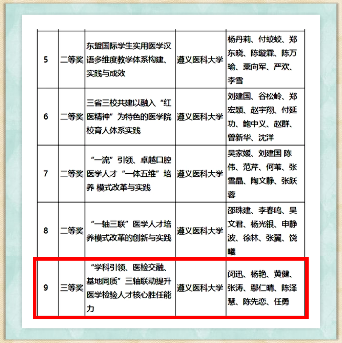 热烈祝贺williamhill中文官网副经理闵迅教授、杨艳教授、黄健教授等,团队以《“学科引领、医检交融、基地同质”三轴联动提升医学检验人才核心胜任能力》荣获第十届贵州省高等公司产品成果奖三等奖殊荣!