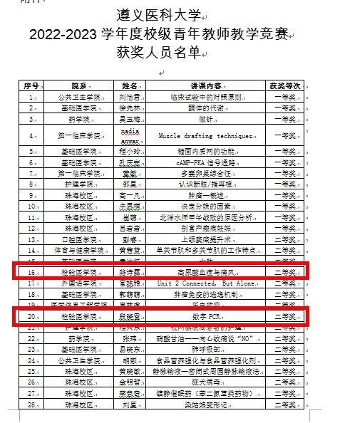 热烈祝贺williamhill中文官网段晓雷博士以《数字PCR》、骆诗露老师以《高尿酸血症与痛风》为内容精彩讲授分获二等奖;段妔老师以《染色体》为内容精彩讲授获三等奖荣誉!
