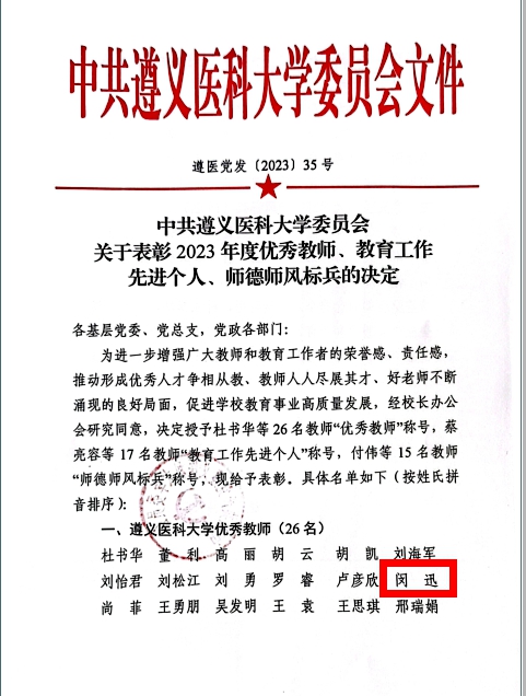 喜 报-公司闵迅教授、蔡亮容副教授分获公司表彰