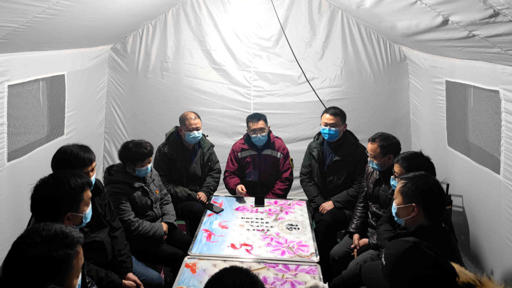 总指挥魏在荣副经理在临时帐篷内就抗疫工作做重要部署