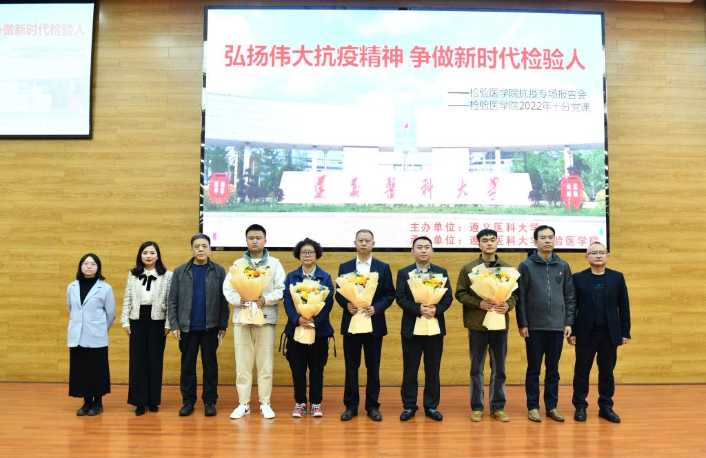 然后,williamhill中文官网团委副书记、员工第二党支部副书记、辅导员付裕作了题为“战疫故事之出征贵阳”的发言。付老师用生动形象的语言动情地讲述了三位带队老师和百名检验学子援“筑”二十天里的故事。一幕幕同心战疫的情景,一幅幅感人至深的画面,都镌刻些遵医检验人的使命担当,讲述着越是艰险越向前的斗争精神。付老师提到,百名检验学子在危难时刻主动请缨,挺身而出,无畏逆行,用星火点亮人间大爱,用无私奉献的精神凝聚起战胜困难的磅礴力量,在这场疫情大考中交出了满意的答卷。