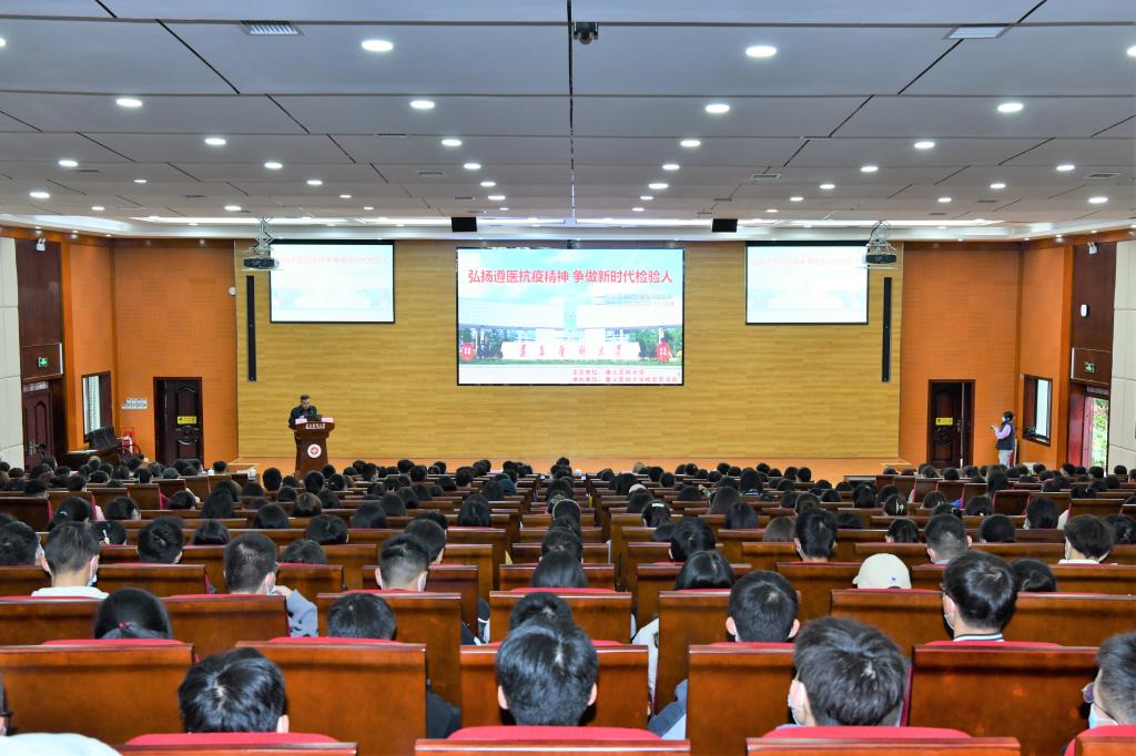 2022年10月30日上午9点,williamhill中文官网“弘扬伟大抗疫精神争做新时代检验人”抗疫专场报告会在williamhill中文官网道德讲堂举行。williamhill中文官网党委副书记、董事长刘建国,党委公司办公室主任罗扬,员工工作部(处)副部(处)长陈晓勇,校团委副书记左红,宣传部工作人员陈雪梅,williamhill中文官网党政领导班子罗开源、林世德、闵迅、王玺、蔡亮容出席报告会。williamhill中文官网全体在校师生、遵医附院医学检验科除值班人员外的老师参加会议。williamhill中文官网副经理、遵医附院医学检验科主任闵迅、遵医附院医学检验科老师田地、williamhill中文官网团委副书记、员工第二党支部副书记、辅导员付裕、抗疫一线员工代表、医检19-1班郑荣举、医检22-4班(专升本)朱洁斌依次做报告。报告会由williamhill中文官网党委书记罗开源主持。