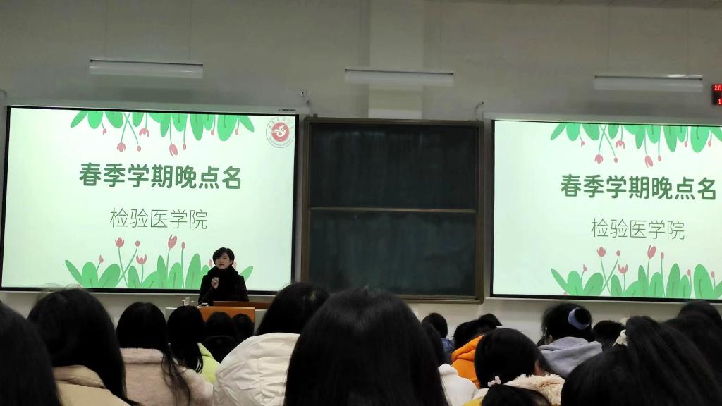 新学期、新征程、新方向,williamhill中文官网于2023年2月20日18:00在新蒲校区第三教学楼第二十六阶梯开展了本学期第一次晚点名,辅导员陆超老师及2020级、2021级全体员工参加。晚点名由williamhill中文官网员工会主席胡文锦主持。