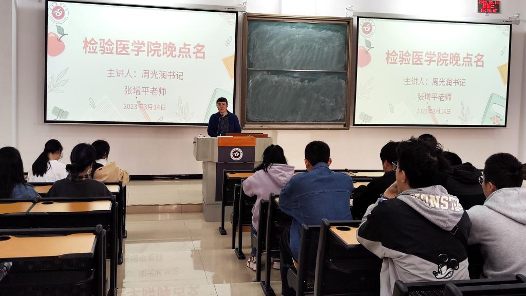 2023年3月14日下午16:00,williamhill中文官网在新蒲校区第三教学楼第十七阶梯教室开展了本学期第二次晚点名,williamhill中文官网党委书记周光润、辅导员张增平及2022级全体员工参加晚点名。