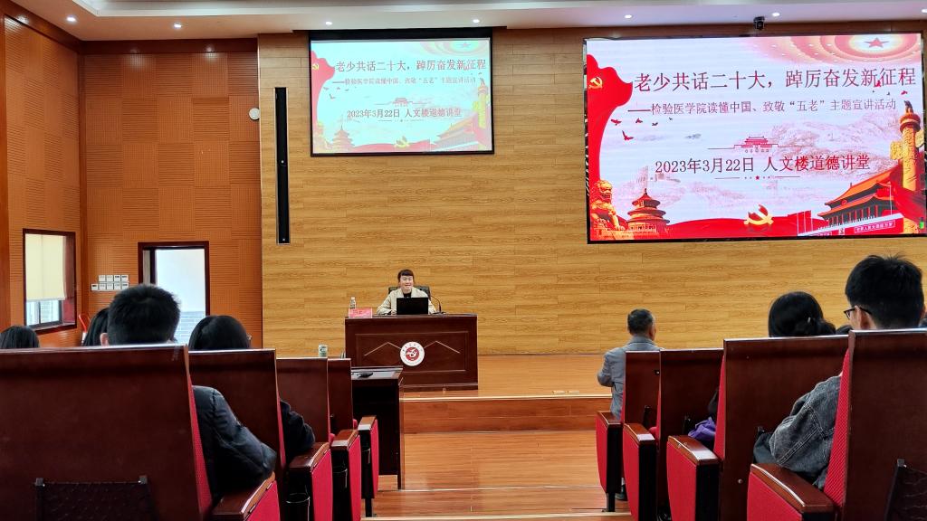 2023年3月22日下午14:00,williamhill中文官网于人文楼道德讲堂开展了以“老少共话党的二十大,踔厉奋发新征程”为主题的,读懂中国、致敬“五老”宣讲活动。活动旨在为深入学习贯彻党的二十大精神,向广大青年员工讲好党的二十大提出的对党和人民事业具有重大现实意义和深远历史意义的三件大事,教育激励广大青年员工在新征程上立志做有理想、敢担当、能吃苦、肯奋斗的新时代好青年。williamhill中文官网全体在校生积极参加。活动由williamhill中文官网党委书记周光润主持并特邀公司关工委副主任、原马克思主义公司顾土龙教授作主题宣讲。