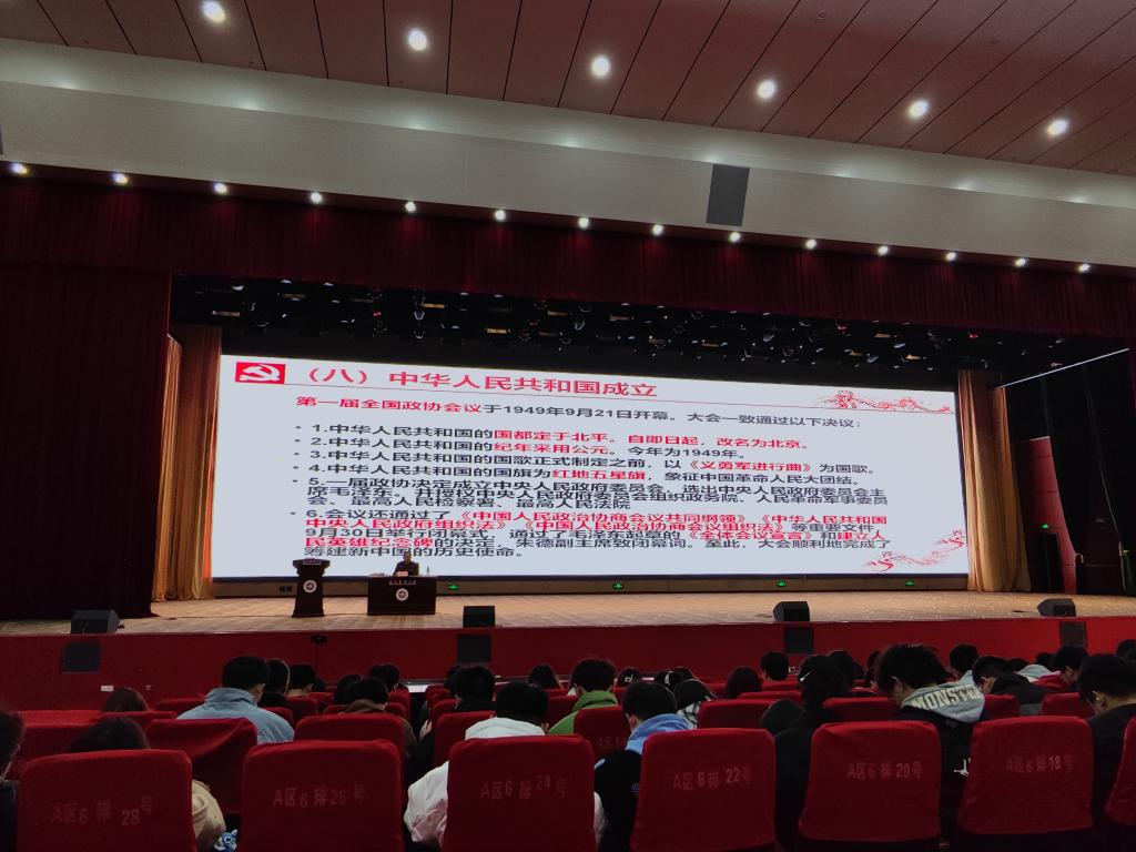 罗书记从古代东西方贸易开始为导引,给同学们分析1840年鸦片战争前后的世界形势与中国共产党成立的前因后果,并从多个方面重点给同学们讲述中国共产党诞生后,领导全国各族人民通过28年艰苦卓绝的新民主主义革命,最终建立新中国的历史。罗治宇老师在讲到中国共产党才是抗日战争的中流砥柱这一史实的时候,列举了大量蒋介石国民党反动政府消极抗战的史料。当讲到蒋介石为了阻止日军进攻武汉,挖开花园口黄河大堤以致黄河决堤改道造成几十万人淹死,上千万人流离失所的时候,同学们都义愤填膺。。