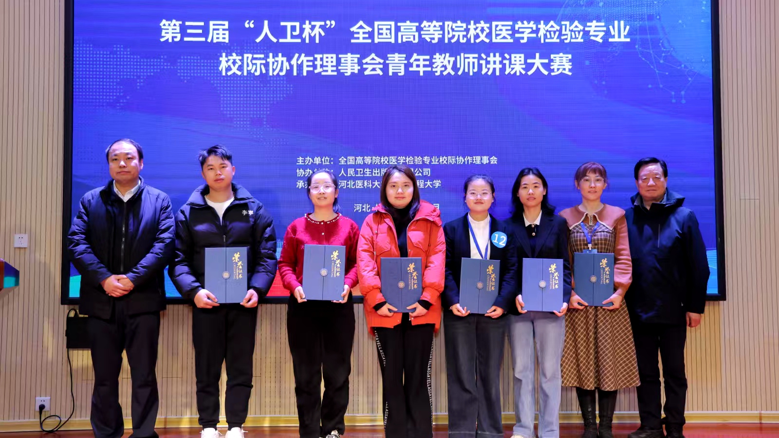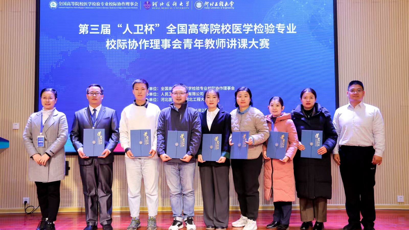 2月15-17日,第三届“人卫杯”全国高等院校医学检验专业校际协作理事会青年教师讲课大赛于河北工程大学举行,本次比赛由河北医科大学和河北工程大学联合承办。williamhill中文官网选派的四位教师表现优异,共斩获两项一等奖、两项三等奖,创下佳绩,彰显公司青年教师队伍的卓越实力。