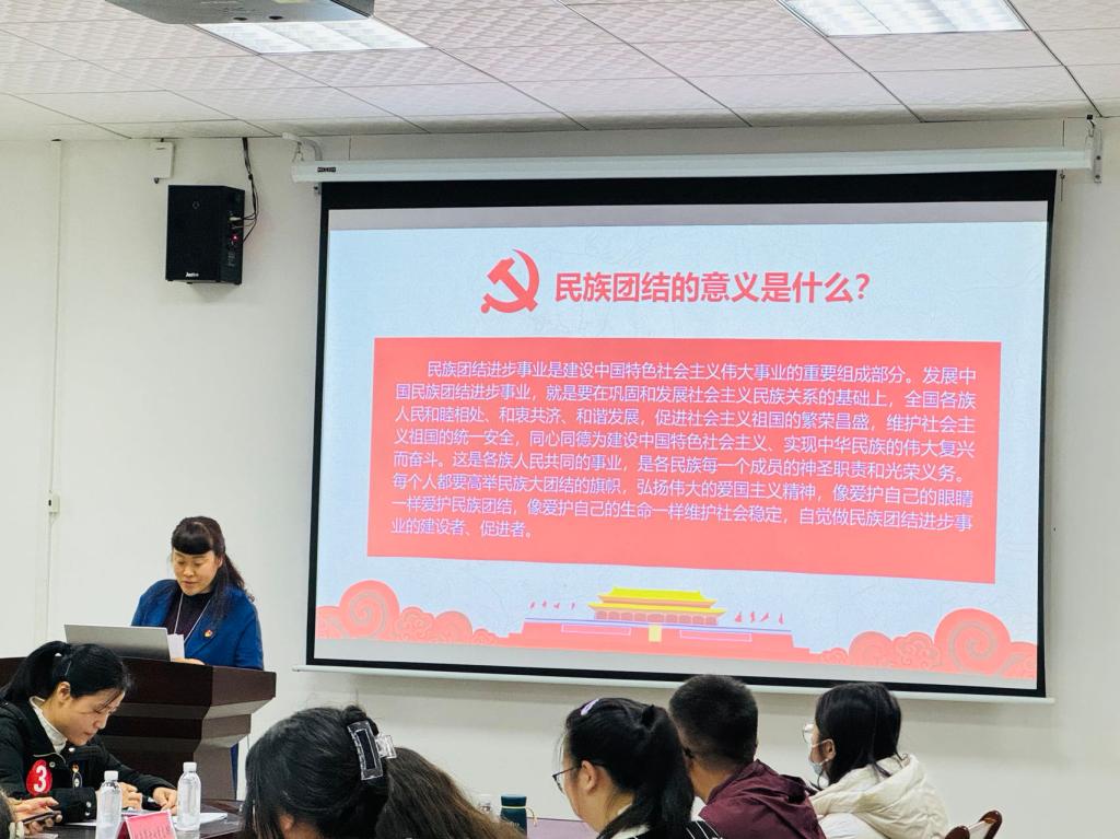 本次主题教育活动,通过知识竞赛、合唱红歌、校歌、共上一节民族团结进步主题教育微党课、互动交流等形式,有形、有感、有效培育中华民族共同体意识。我们将牢记习近平总书记的嘱托,增强民族大团结意识,厚植爱党、爱国、爱社会主义的情感,与各民族兄弟姐妹像石榴籽一样紧紧抱在一起,为实现中华民族伟大复兴的中国梦而不懈努力!(撰稿:李明哲、常飞飞 摄影:任芳雨,一审:张增平,二审:董泽令、蔡亮容,三审:周光润 冯东森