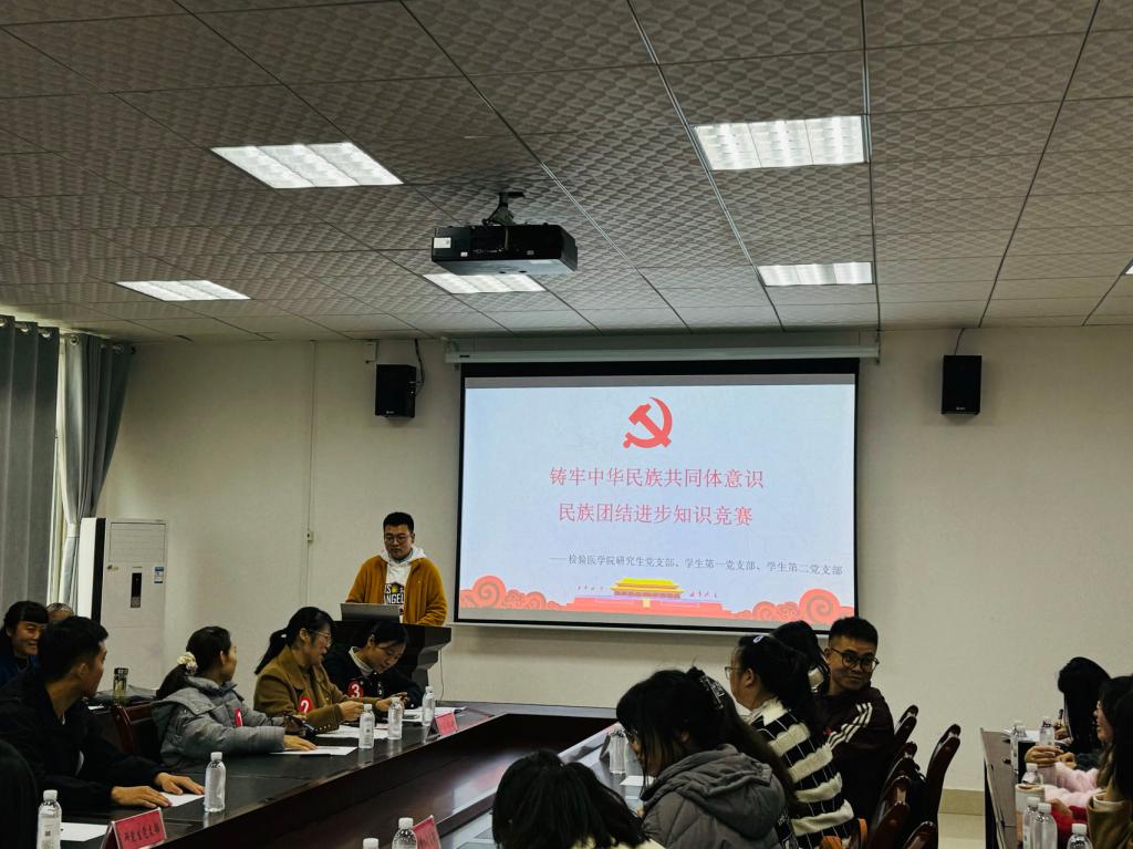 随后举行了铸牢中华民族共同体意识民族团结进步知识竞赛。比赛中各支队伍准备充分,沉着应答,积极拼手速、拼脑力,充分展示了扎实的知识储备和显著的学习效果。整个比赛兼具知识性和趣味性,紧张有趣、生动活泼,现场观众掌声阵阵。知识竞赛由纪检兼宣传委员李明哲同志主持。