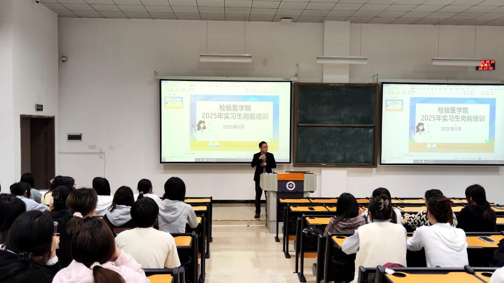 罗治宇副书记则从医学检验学的职业发展角度为同学们上了一堂生动的职业规划课。最后,罗治宇副书记结合近期校内的警示案例,从员工人身与财产安全角度提醒实习生务必提高警惕,尤其注意寝室安全用电规范,杜绝违规电器使用;对于校外住宿的同学,他特别叮嘱需结伴出行,增强自我保护能力,确保实习期间平安顺利。